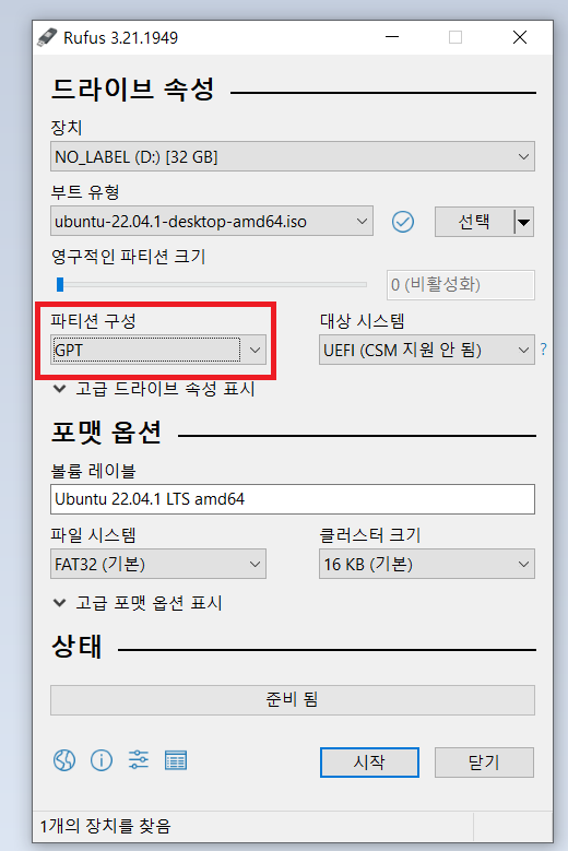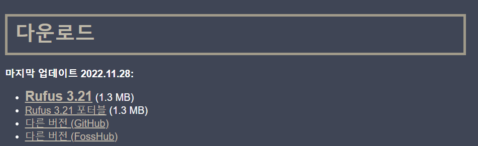 참고로 Rufus는 윈도우에서 동작이 가능하답니다.