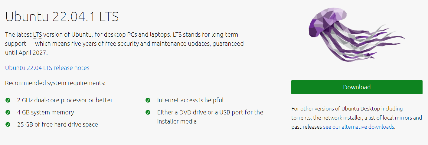 -> 위 페이지에서 ubuntu 설치파일을 받습니다. 22.04버전이 현재 지원중인 버전인듯합니다.