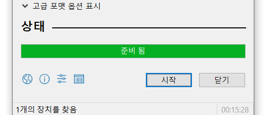 다 됐으면 파일시스템은 건들지 말고 시작버튼 눌러서 진행.